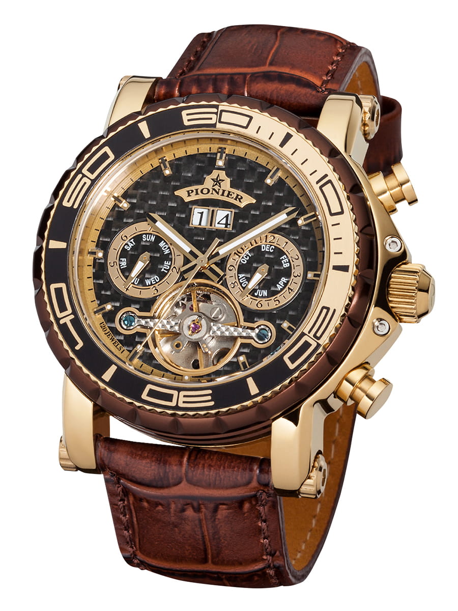 Sleek and unique, this men's Miami timepiece from Pionier is a great addition to any sportsman's collection. This watch was designed to strike, and it's super functional features will make it perfect for your everyday needs.