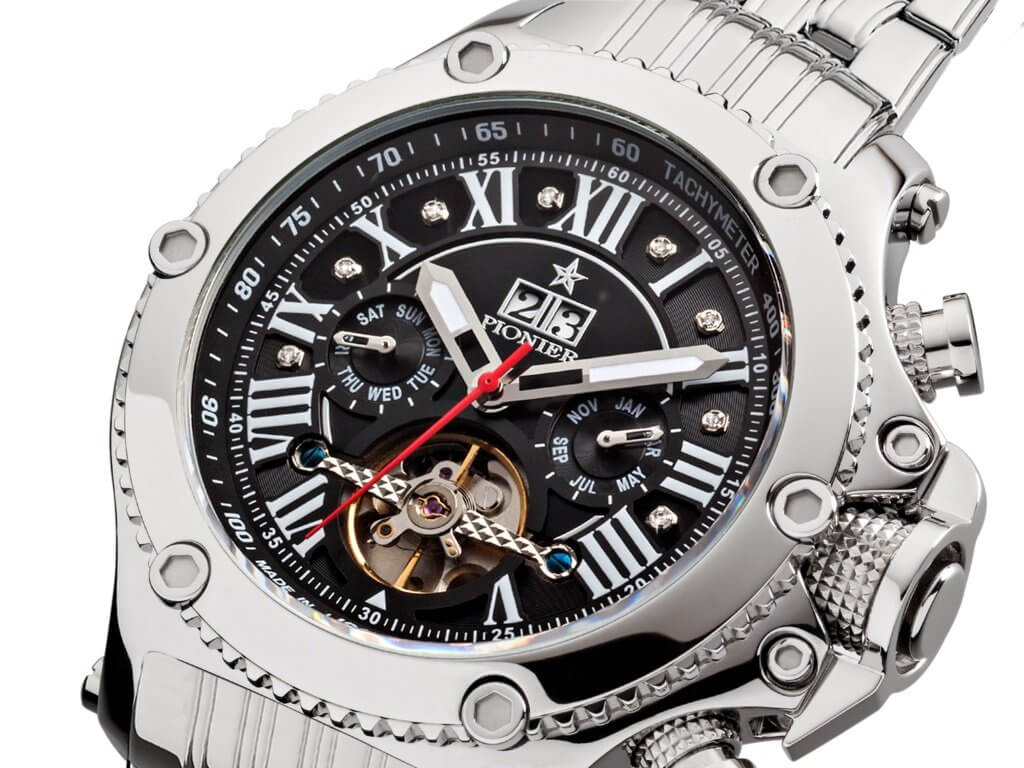 Modern and casual with a versatile and ruggedly sophisticated look, this finely detailed New York Pionier timepiece lends a touch of edge and sleek to an everyday and on the go fashion. It is built to last and represent quality. Make yourself a part of it.